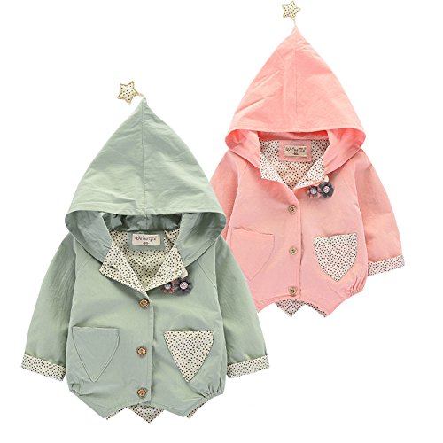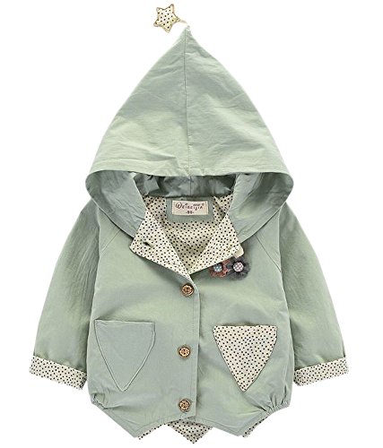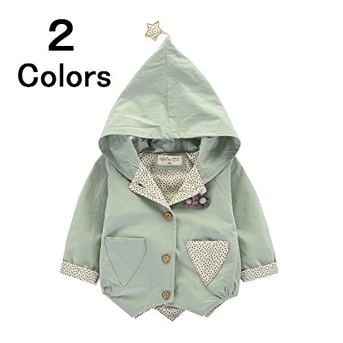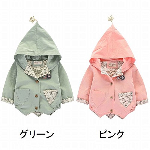 Plus Nao(プラスナオ) 子供用ジャンパー フード付き ブルゾン パーカー ウィンドブレーカー ジャケット 長袖 ボタン かわいい 星付き キッ グリーン 100