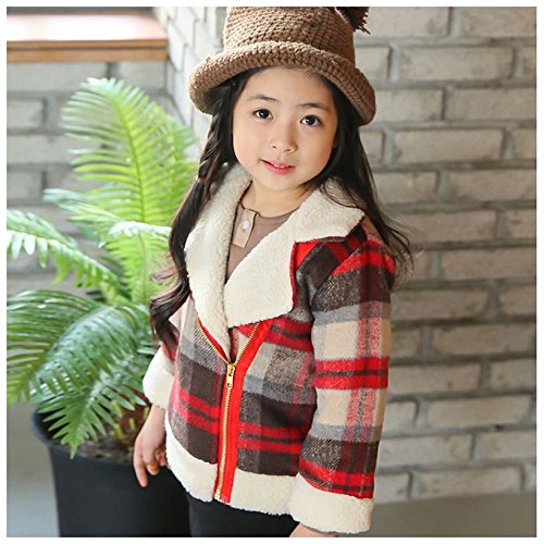 Plus Nao(プラスナオ) 子供服 キッズ ジャケット 長袖 ブルゾン ショートコート アウター ライダースジャケット 上着 秋冬 暖かい チェック 130 ベージュ