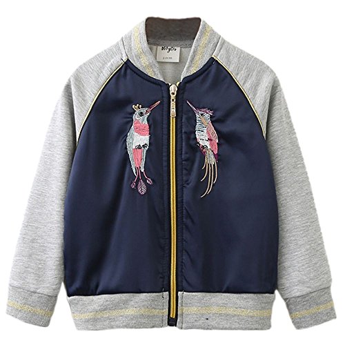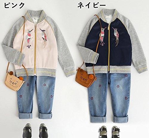 Plus Nao(プラスナオ) 刺繍ジャケット ブルゾン ジャンパー スタジャン スカジャン アウター 子供用 こども用 キッズ KIDS 女の子 男の子 ネイビー 7-8才
