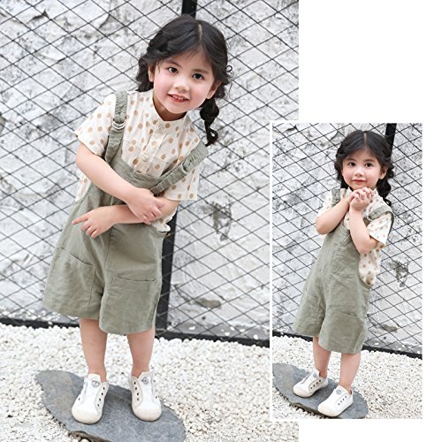 とってもキュートな子供用オーバーオール&シャツ! シンプルなデザインのオーバーオールと水玉のシャツがとってもおしゃれな組み合わせですね。(サイズについて)画像を参照ください。(素材について)綿、ポリエステル