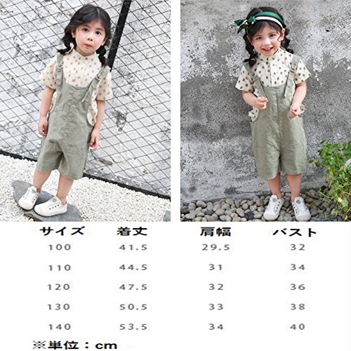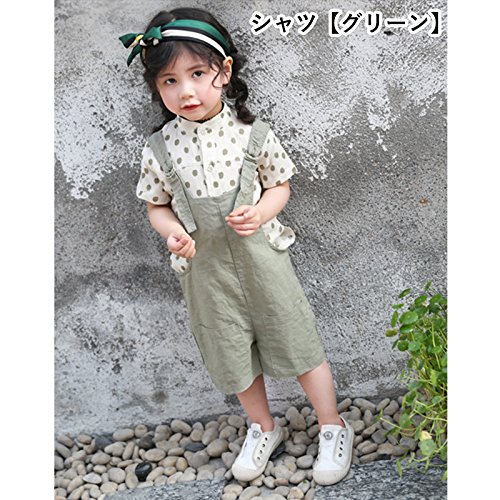 オーバーオール&シャツ ブラウス 半袖 水玉 オールインワン 無地 ボトムス トップス 子供服 キッズ 女の子 かわいい 100 110 120 130 140