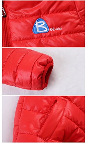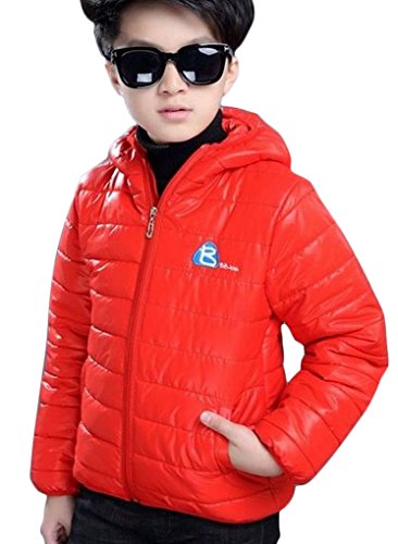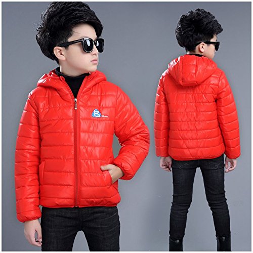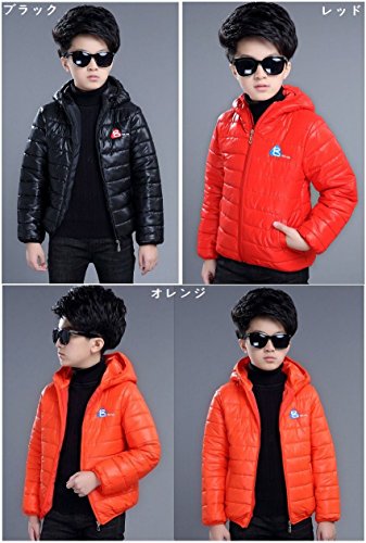 Plus Nao(プラスナオ) 子供用 ジップアップジャケット ダウン風ジャケット 長袖 フード付き 中綿入り ジャンパー ブルゾン アウター 上着 レッド 160