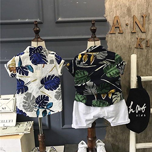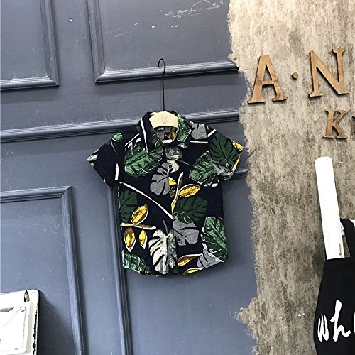 Plus Nao(プラスナオ) 半袖シャツ アロハシャツ ショートパンツ 短パン 子供用 トップス ボトムス 夏 リゾート おしゃれ リーフ柄 シンプル ボトムス 110cm