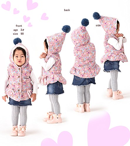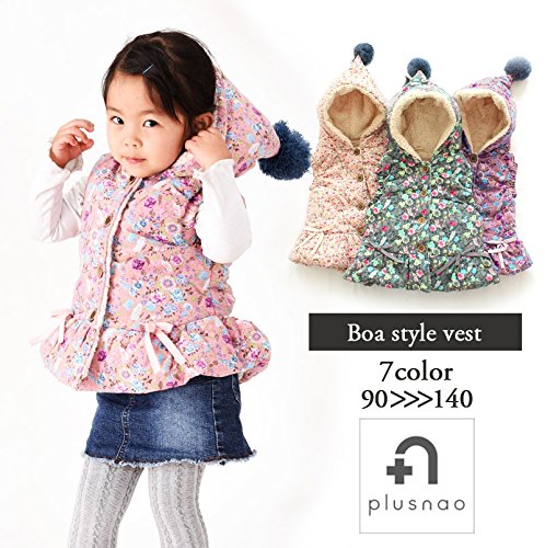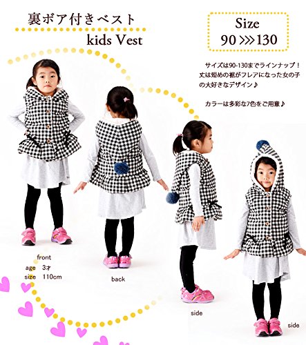 フードやボンボン、リボンが女の子らしい子供用ベストです☆ 中はボア素材になっていて、可愛く防寒できますね!(サイズについて)平置き実寸サイズ 90 バスト 29 肩幅 26.5 着丈 40 100 バスト 33 肩幅 28 着丈 40 110 バスト 34 肩幅 29 着丈 43 120 バスト34 肩幅 30 着丈 43 130 バスト36 肩幅 33 着丈48(素材について)表地:ポリエエステル100% 裏地;綿 95% ポリエステル5%