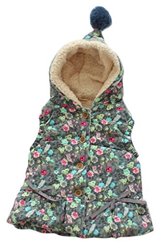 Plus Nao(プラスナオ) 子供用フード付き ベスト 裏ボア ボンボン付き 前ボタン リボン チェック柄 花柄 ふわふわ あったか カジュアル 可愛 140 グレー