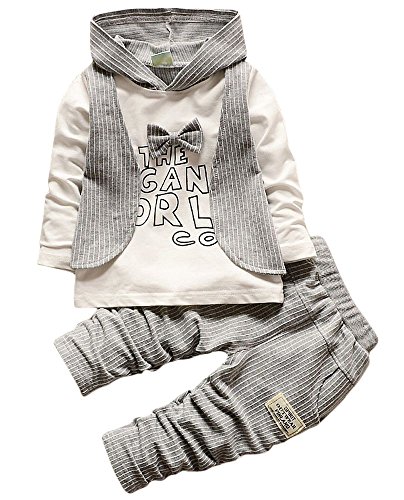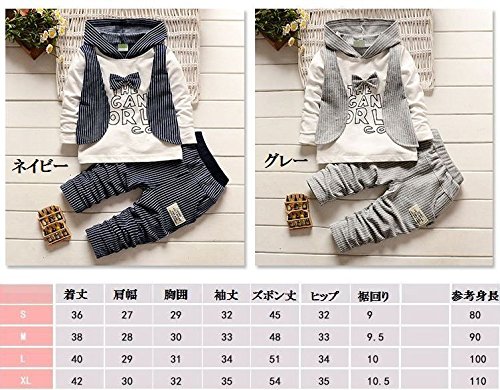 スウエット ベビー キッズ トップス パンツ 上下 セット セットアップ 長袖 ベスト フード付き ストライプ ロゴ 蝶ネクタイ グレー ネイビー 80 90 100 110