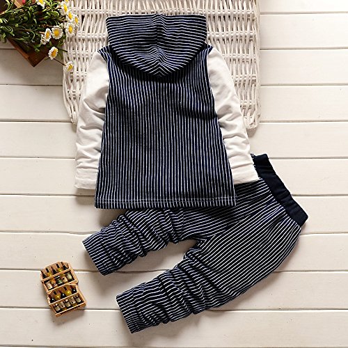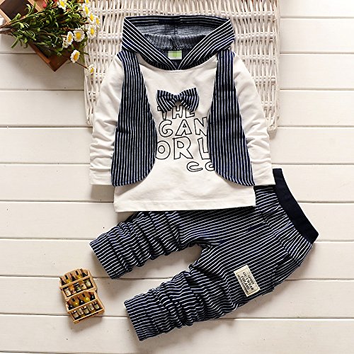 Plus Nao(プラスナオ) スウエット ベビー キッズ トップス パンツ 上下 セット セットアップ 長袖 ベスト フード付き ストライプ ロゴ 蝶ネ ネイビー 80cm