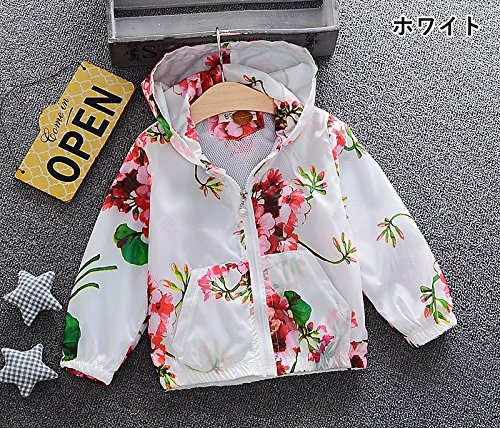 Plus Nao(プラスナオ) ウィンドブレーカー ウインドブレーカー ジップアップパーカー アウター 子供服 女の子 女児 長袖 花柄 フラワープリ ホワイト 8
