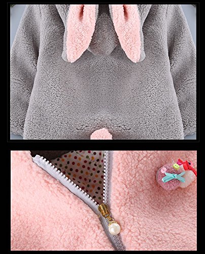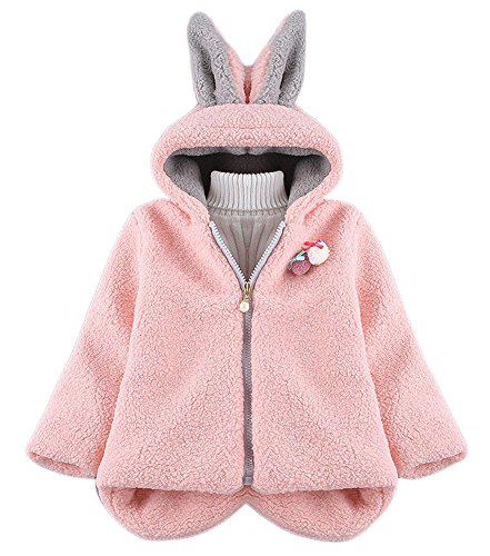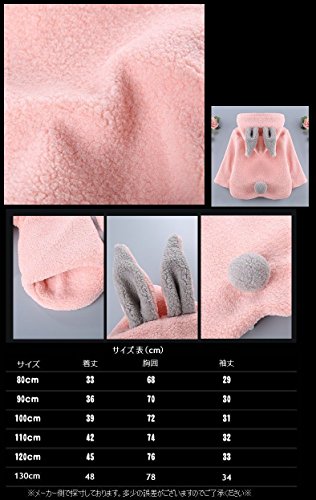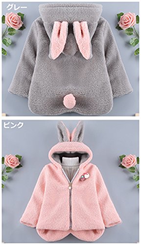 Plus Nao(プラスナオ) 子供用 ジップアップパーカー フリースパーカー フード付き 長袖 トップス アウター 耳付きフード ウサ耳 しっぽ付き ピンク 80