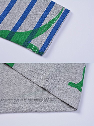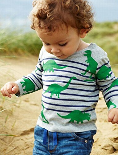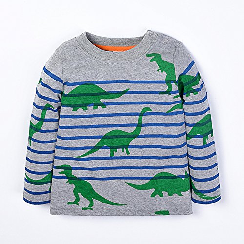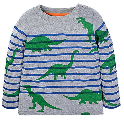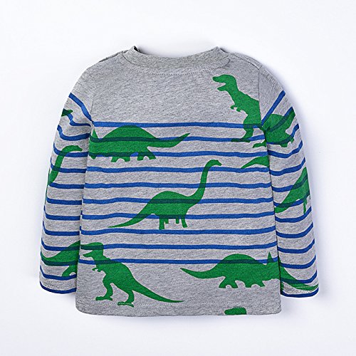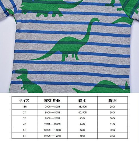 Plus Nao(プラスナオ) カットソー ベビー キッズ 長袖 クルーネック 長T ロンT スウェット トレーナー グレー ボーダー 恐竜 トップス カ - 18M