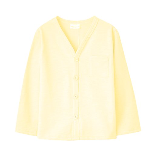 Plus Nao(プラスナオ) 子供用 カーディガン Vネック 長袖 シンプル 無地 男の子 女の子 キッズ ジュニア 100 110 120 130 140 150 160 ライトイエロー 140