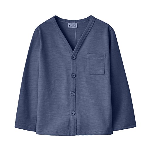 Plus Nao(プラスナオ) 子供用 カーディガン Vネック 長袖 シンプル 無地 男の子 女の子 キッズ ジュニア 100 110 120 130 140 150 160 ブルー 130