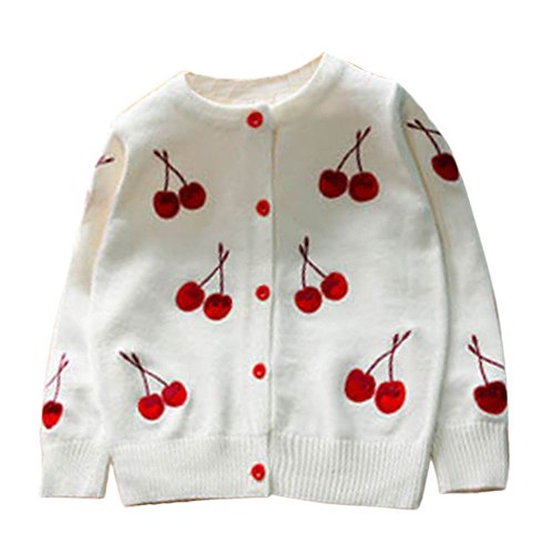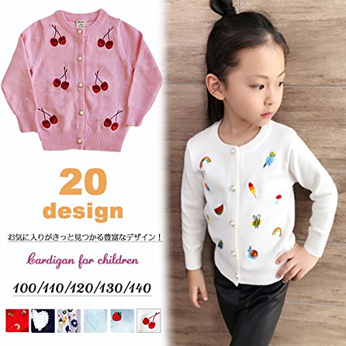 カーディガン 子供用 キッズ ジュニア 女の子 子供 長袖 丸首 ニット ハート柄 フルーツ柄 パール 可愛い おしゃれ 100 110 120 130 140