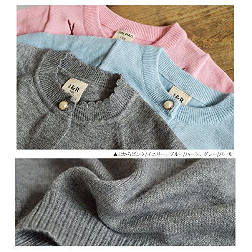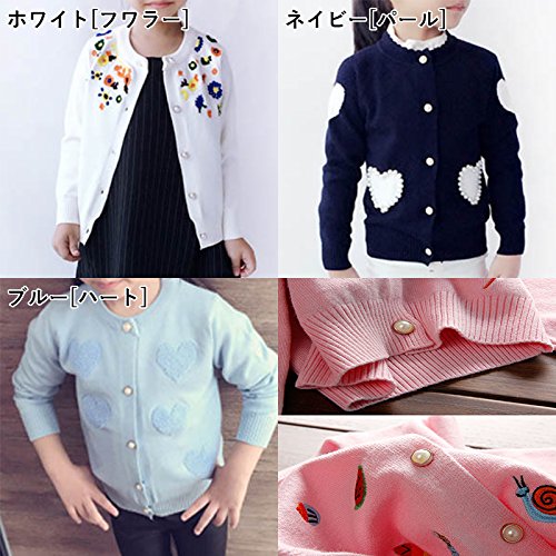 Plus Nao(プラスナオ) カーディガン 子供用 キッズ ジュニア 女の子 子供 長袖 丸首 ニット ハート柄 フルーツ柄 パール 可愛い おしゃれ 1 140 ブルー【ハート】