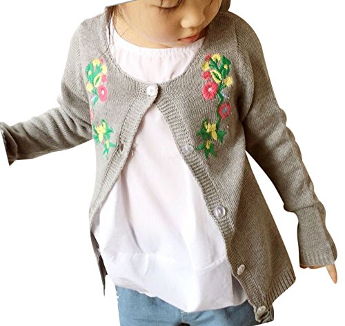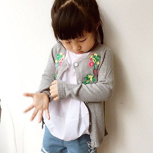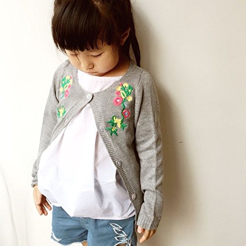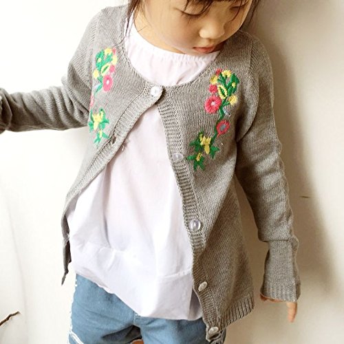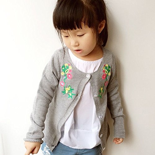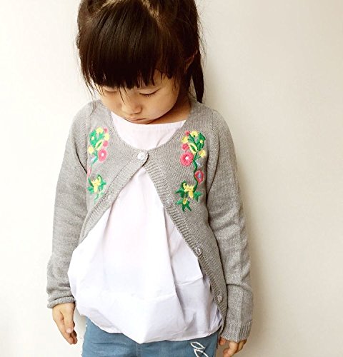 Plus Nao(プラスナオ) カーディガン 花柄 刺繍 ベビー キッズ 赤ちゃん 子ども 幼児 低学年 かわいい おしゃれ キュート 前ボタン 秋冬 女 グレー 90