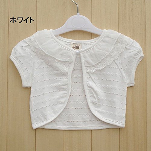 Plus Nao(プラスナオ) 子ども用 子ども服 キッズ服 女の子 トップス カーディガン 半袖 ラウンドネック フリル ボタン レース風 白 ホワイ ホワイト 100