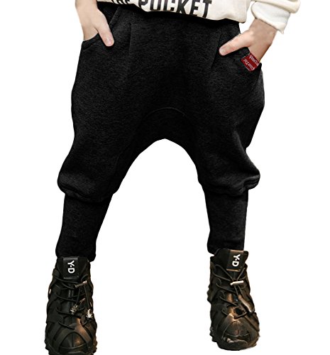 Plus Nao(プラスナオ) 子供用 サルエルパンツ ロングパンツ 長ズボン テーパードパンツ シンプル 無地 ウエストゴム カジュアルパンツ ボト ブラック【ノーマル】 110