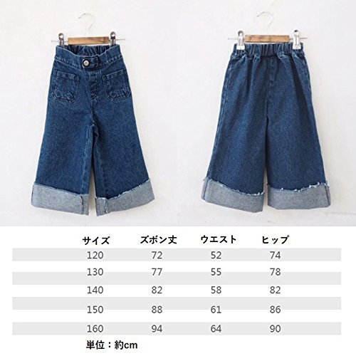 デニムパンツ ワイドパンツ バギーパンツ ガウチョパンツ シンプル おしゃれ かわいい 子供服 女の子 キッズ ジュニア 120 130 140 150 160