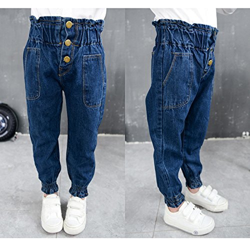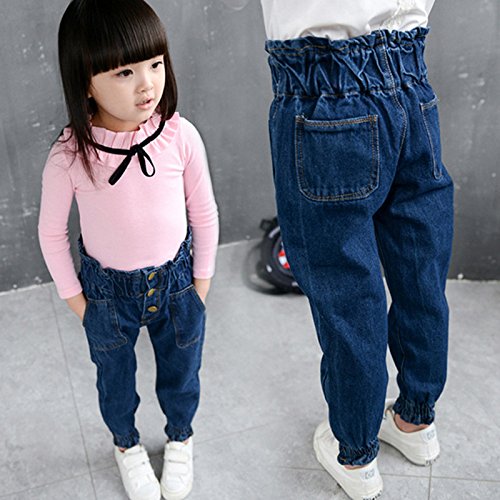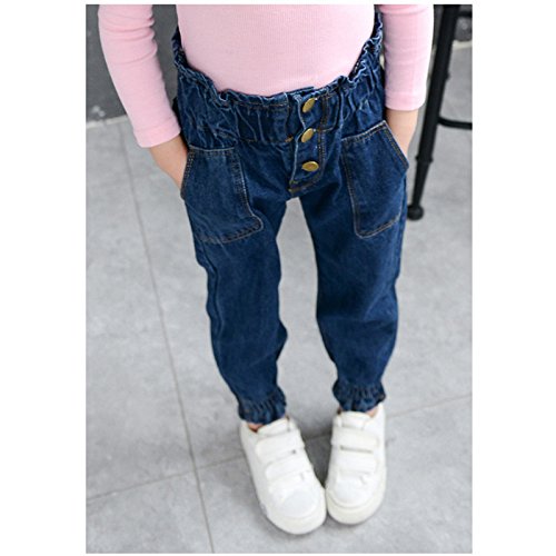 子供用デニムパンツ。 シンプルなデザインなので、色々なコーディネートが楽しめますね。(サイズについて)100:丈54CM ヒップ34CM 110:丈59CM ヒップ35CM 120:丈64CM ヒップ37CM 130:丈67CM ヒップ38CM 140:丈71CM ヒップ39CM (素材について)綿混