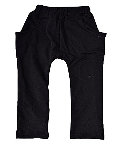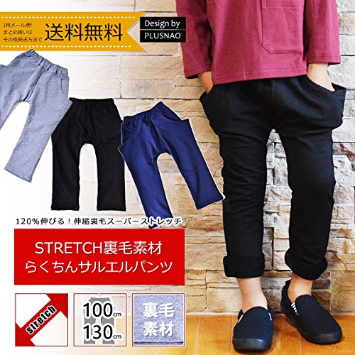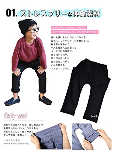 Plus Nao(プラスナオ) 子供用裏毛素材サルエルパンツ 裏毛 サルエル スエット ジャージ パンツ ストレッチ ウエストゴム アジャスター付き 100 ブラック