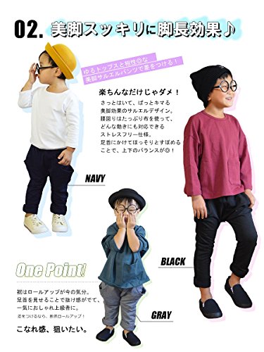 ウエスト総ゴムで脱ぎはきが楽ちん! 美脚効果ありのストレッチ素材サルエルパンツ。(サイズについて)100cm|W21.5cm|丈54cm|股上25cm|股下31.5cm| 110cm|W22cm|丈62cm|股上25.5cm|股下36.5cm| 120cm|W23.5cm|丈66cm|股上26.5cm|股下41cm| 130cm|W24cm|丈74cm|股上27.5cm|股下48cm|(素材について)ポリエステル95% ポリウレタン 5%