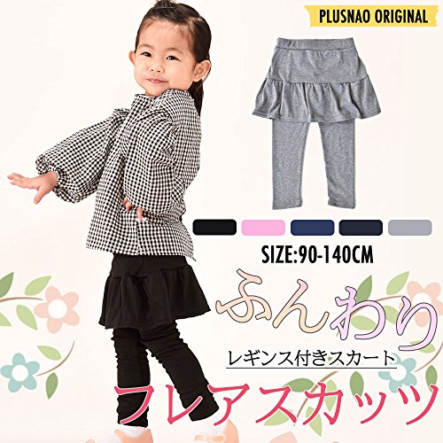 Plus Nao(プラスナオ) キッズスカート付きレギンス スカッツ シンプルコーデ 無地 フリルデザインボトムス 女の子 ジュニア 子供服 90 100 130 ブラック
