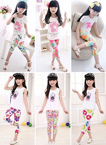 レギンス スパッツ ボトムス 7分丈 ジュニア キッズ 子供 服 子ども こども 女の子 女児 動きやすい カジュアル 花柄 フラワー カラフル かわいい 可愛い おしゃれ 110 120 130 140 150cm