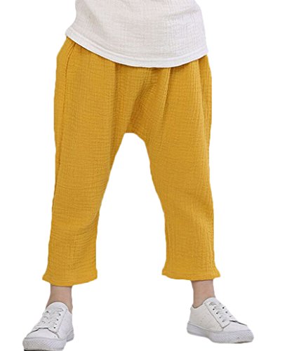Plus Nao(プラスナオ) サルエルパンツ ズボン 子供服 男の子 サルエル 長ズボン 9分丈 ゆったり 薄手 股上深め ロールアップ おしゃれ オシ 100 イエロー