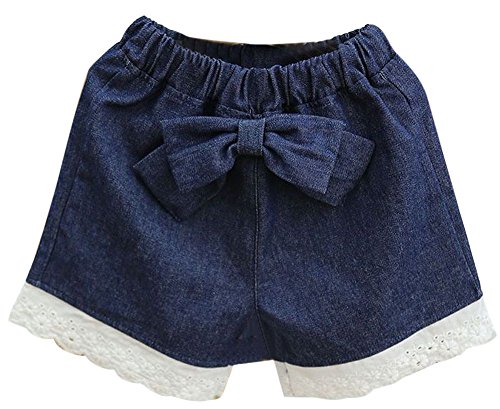 Plus Nao(プラスナオ) パンツ ベビー キッズ 女の子 ショートパンツ デニム レース 切り替え リボン カジュアル ウエストゴム ボトムス ラ DenimBlue 100cm