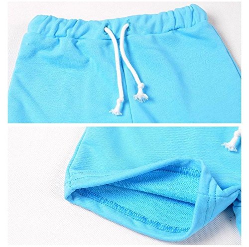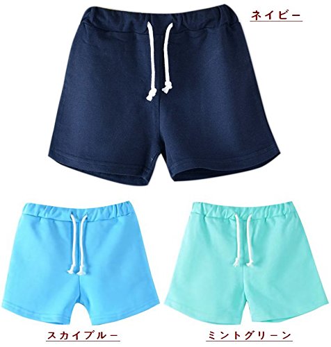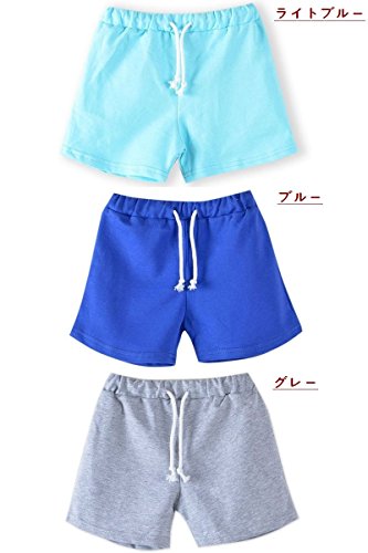 Plus Nao(プラスナオ) 子供用 ショートパンツ ホットパンツ ボトムス スウェット ウエストゴム ウエスト紐 運動着 部屋着 パジャマ ルーム 150 ブルー
