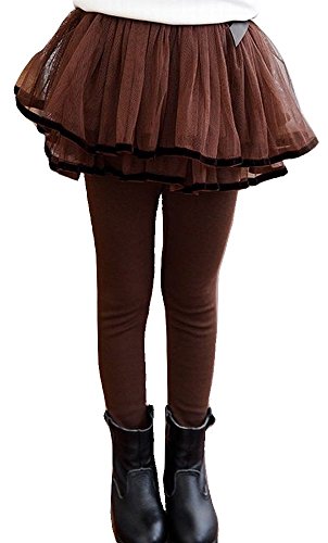Plus Nao(プラスナオ) 子供用 チュールスカッツ 裏起毛 ノーマル チュールスカート付 レギンス スカッツ ウエストゴム リボン パイピング 140 ブラウン【裏起毛】
