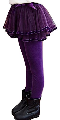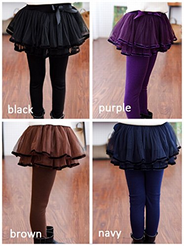 Plus Nao(プラスナオ) 子供用 チュールスカッツ 裏起毛 ノーマル チュールスカート付 レギンス スカッツ ウエストゴム リボン パイピング 100 パープル【裏起毛】