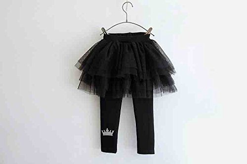 Plus Nao(プラスナオ) スカート ベビー キッズ チュチュスカート レギンス付き ボトムス フリル 王冠プリント ブラック 100 110 120 130 14 100cm ブラック