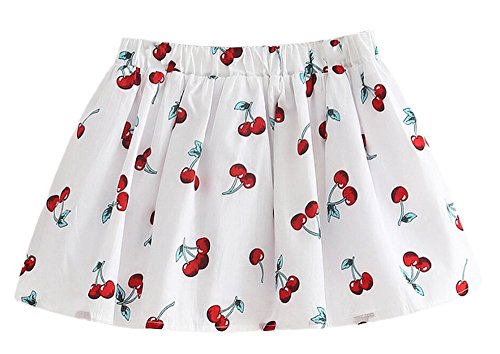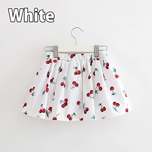 Plus Nao(プラスナオ) スカート 子供用 キッズ ミニ 青 ウエストゴム 柄 夏 膝上 チェリー さくらんぼ かわいい 楽 ギャザー ホワイト 140cm