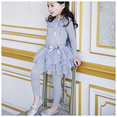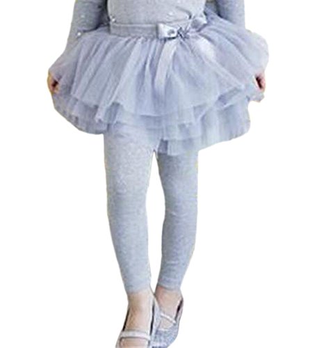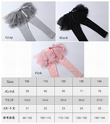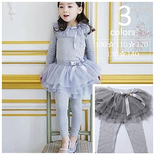Plus Nao(プラスナオ) 子供用 チュールスカッツ チュールスカート付 レギンス スカッツ チュチュ ティアード ウエストゴム ビジュー付 リボ グレー 140