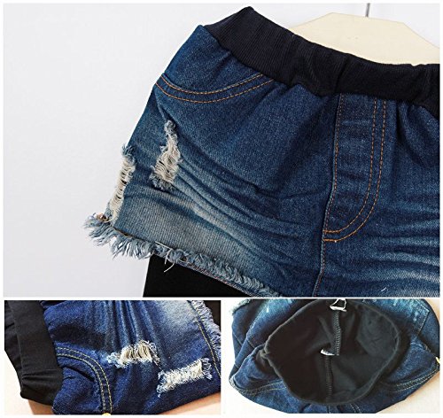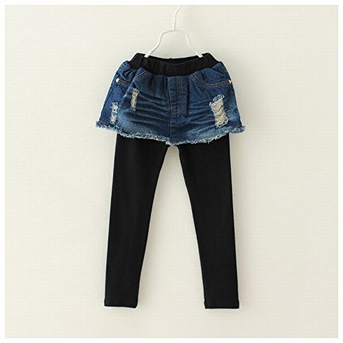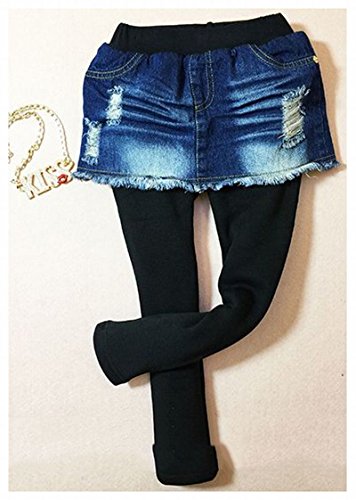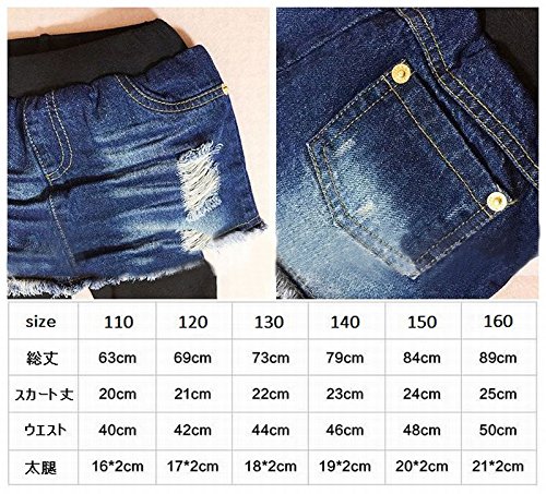 Plus Nao(プラスナオ) 子供用 デニムスカッツ デニム スカート付 レギンス スカッツ ノーマル 裏起毛 ウエストゴム ダメージ クラッシュ カ 裏起毛 150