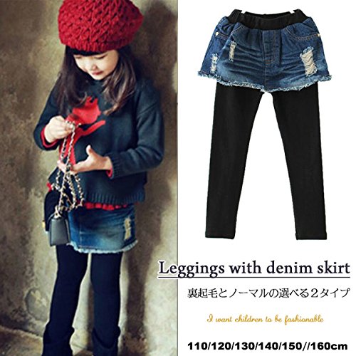 ダメージ加工・デニムスカート付レギンス。 ウエストゴムなので着脱楽ちん♪可愛くて機能的なアイテムです。 レギンス部分はノーマルと裏起毛の2タイプ。(サイズについて)【110】【120】【130】【140】【150】【160】 ※詳細:画像をご参照ください