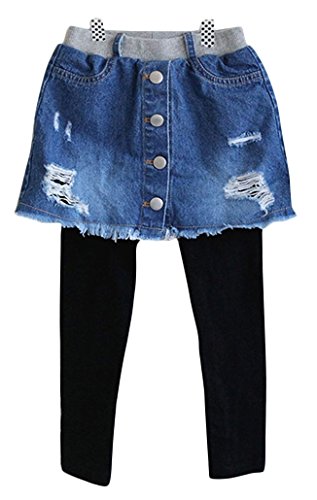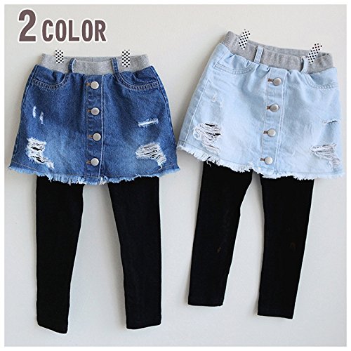デニムスカート付レギンスパンツ ミニスカート付レギンスパンツ 子供服 女の子 女児 小学生 キッズ ボトムス ダメージデニム 可愛い ガーリー おしゃれ 100cm 110cm 120cm 130cm 140cm 150cm 160cm