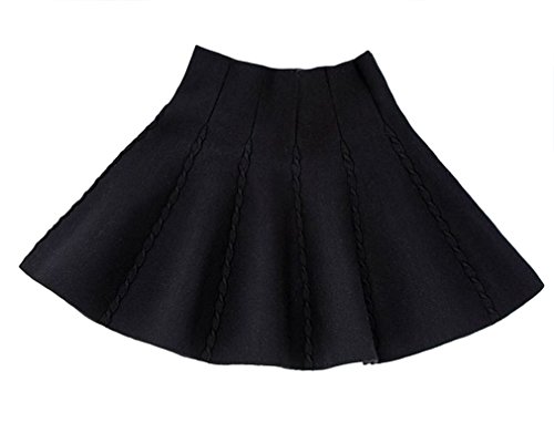 Plus Nao(プラスナオ) 子供用 大人用 ミニスカート ハイウエスト ショート丈 フレアスカート 親子ペア ブルームスカート ボトムス ウエスト 140 C【ブラック】