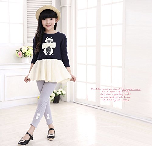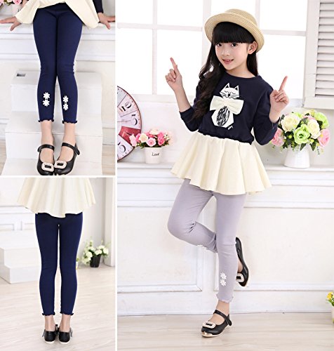 Plus Nao(プラスナオ) レギンスパンツ スパッツ レッグウェア 子供服 子供用 女の子 女児 キッズ 小学生 お花 フラワーモチーフ シンプル 110 ダークグレー