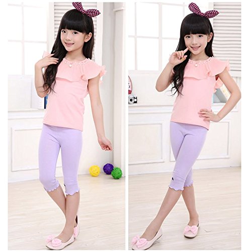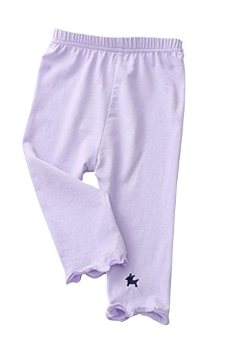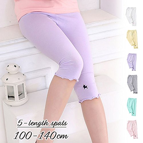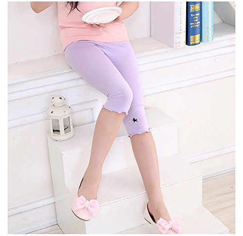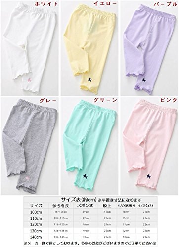 Plus Nao(プラスナオ) 子供用 スパッツ 5分丈 レギンス タイツ ウエストゴム シンプル ワンポイント カラースパッツ 刺繍 裾フリル 動きや 120 パープル