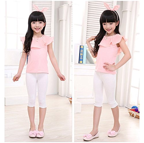 子供用 スパッツ 5分丈 レギンス タイツ ウエストゴム シンプル ワンポイント カラースパッツ 刺繍 裾フリル 動きやすい おしゃれ 可愛い かわいい 女の子 女児 キッズ 子供服 子ども服 こども服 高学年 五分丈 100cm 110cm 120cm 130cm 140cm
