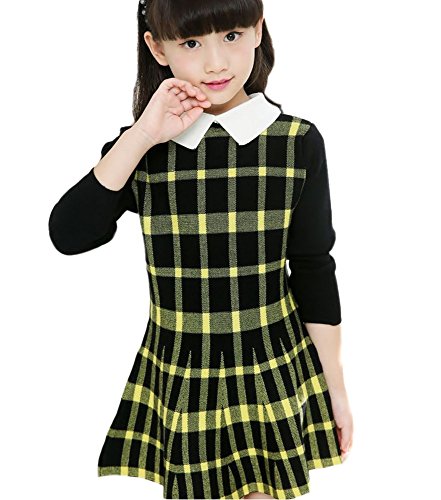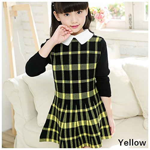 Plus Nao(プラスナオ) 子供用 ミニワンピース フレア 長袖 白襟付き チェック×無地 卒業式 卒園式 入園式 入学式 結婚式 発表会 100 110 12 イエロー 110