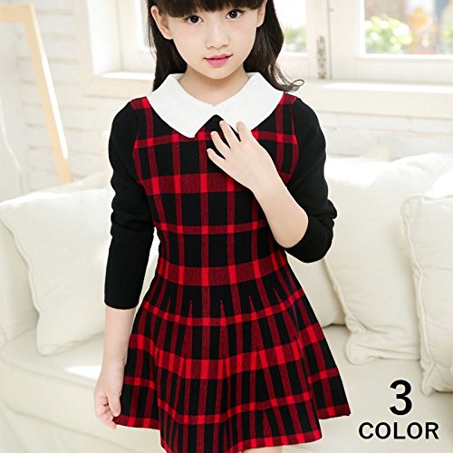 子供用 ミニワンピース フレア 長袖 白襟付き チェック×無地 卒業式 卒園式 入園式 入学式 結婚式 発表会 100 110 120 130 140 150 160 発表会 七五三