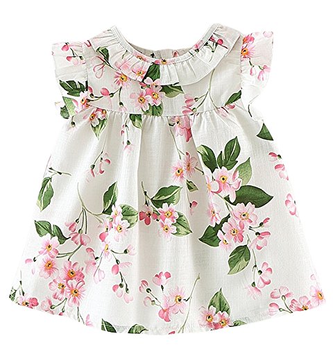 Plus Nao(プラスナオ) ノースリーブワンピース ミニワンピース 花柄ワンピース Aラインワンピース 子供服 女の子 女児 キッズ KIDS フリル ホワイト 60-70