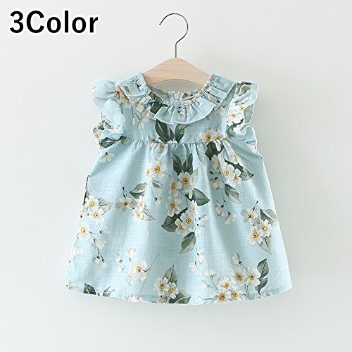 Plus Nao(プラスナオ) ノースリーブワンピース ミニワンピース 花柄ワンピース Aラインワンピース 子供服 女の子 女児 キッズ KIDS フリル ライトブルー 90-100