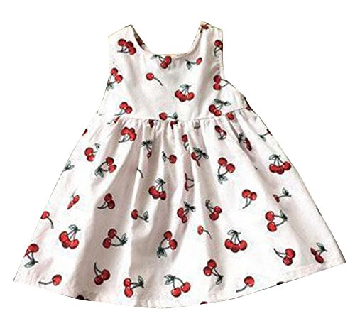 ミニワンピース キッズ ガールズ 子供服 ノースリーブ 半袖 フレアワンピース バックリボン カジュアル 花柄 サクランボ 女の子 ジュニア 夏用 リゾート
