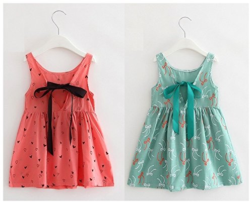 ミニワンピース キッズ ガールズ 子供服 ノースリーブ 半袖 フレアワンピース バックリボン カジュアル 花柄 サクランボ 女の子 ジュニア 夏用 リゾート