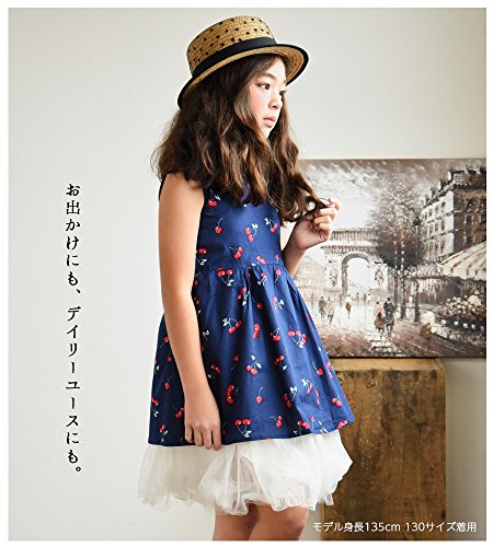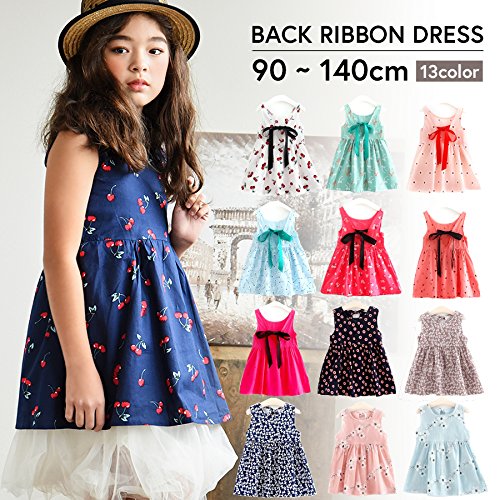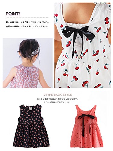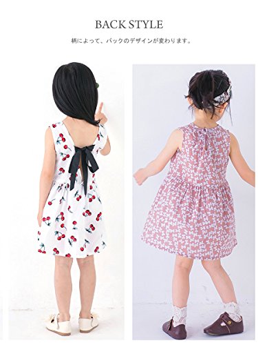 ミニワンピース キッズ ガールズ 子供服 ノースリーブ 半袖 フレアワンピース バックリボン カジュアル 花柄 サクランボ 女の子 ジュニア 夏用 リゾート