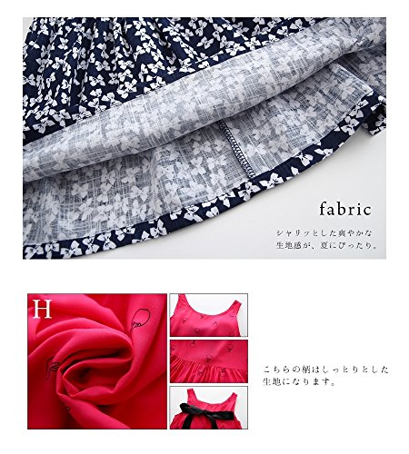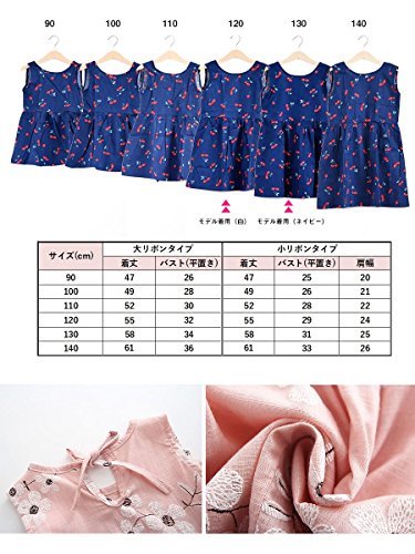 Plus Nao(プラスナオ) ミニワンピース キッズ ガールズ 子供服 ノースリーブ 半袖 フレアワンピース バックリボン カジュアル 花柄 サクラ 110 D